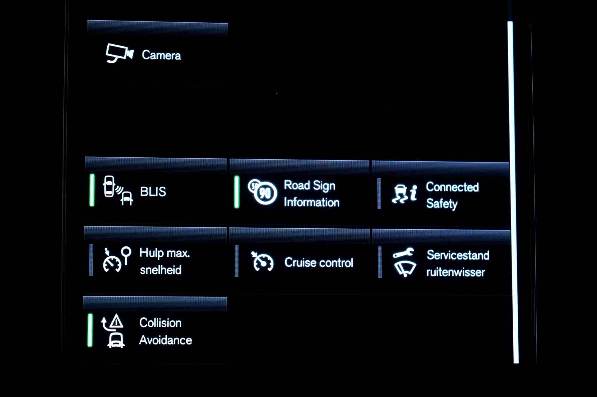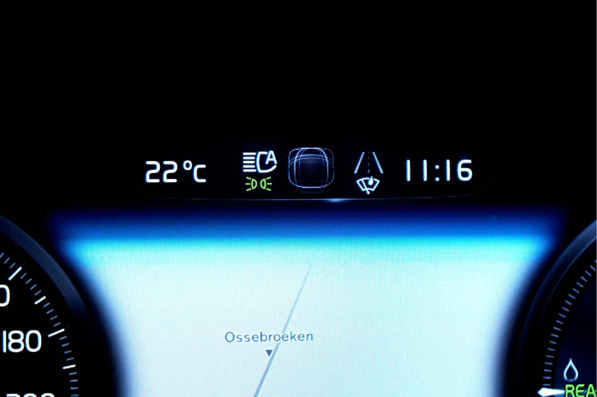 Als bestuurder van deze Volvo bent u nooit alleen. U wordt onderweg bijgestaan door technologische hulpmiddelen die samen met u de weg in de gaten houden. Als het nodig is, grijpen ze zelfs in, door te remmen of bij te sturen. Een belangrijke bijdrage aan de veiligheid onderweg levert de verkeersbord-detectie. Het Lane-keeping systeem zorgt dat u mooi binnen de lijntjes blijft. Ongemerkt buiten de rijstrook komen is er niet meer bij. Een korte blik over uw schouder bij inhalen of afslaan is niet altijd genoeg. De actieve dodehoekdetectie helpt de veiligheid te vergroten. In deze Volvo vinden we verder een forward collision warning system, hill hold functie, brake assist, vermoeidheidsherkenning en bandenspanningcontrolesysteem.