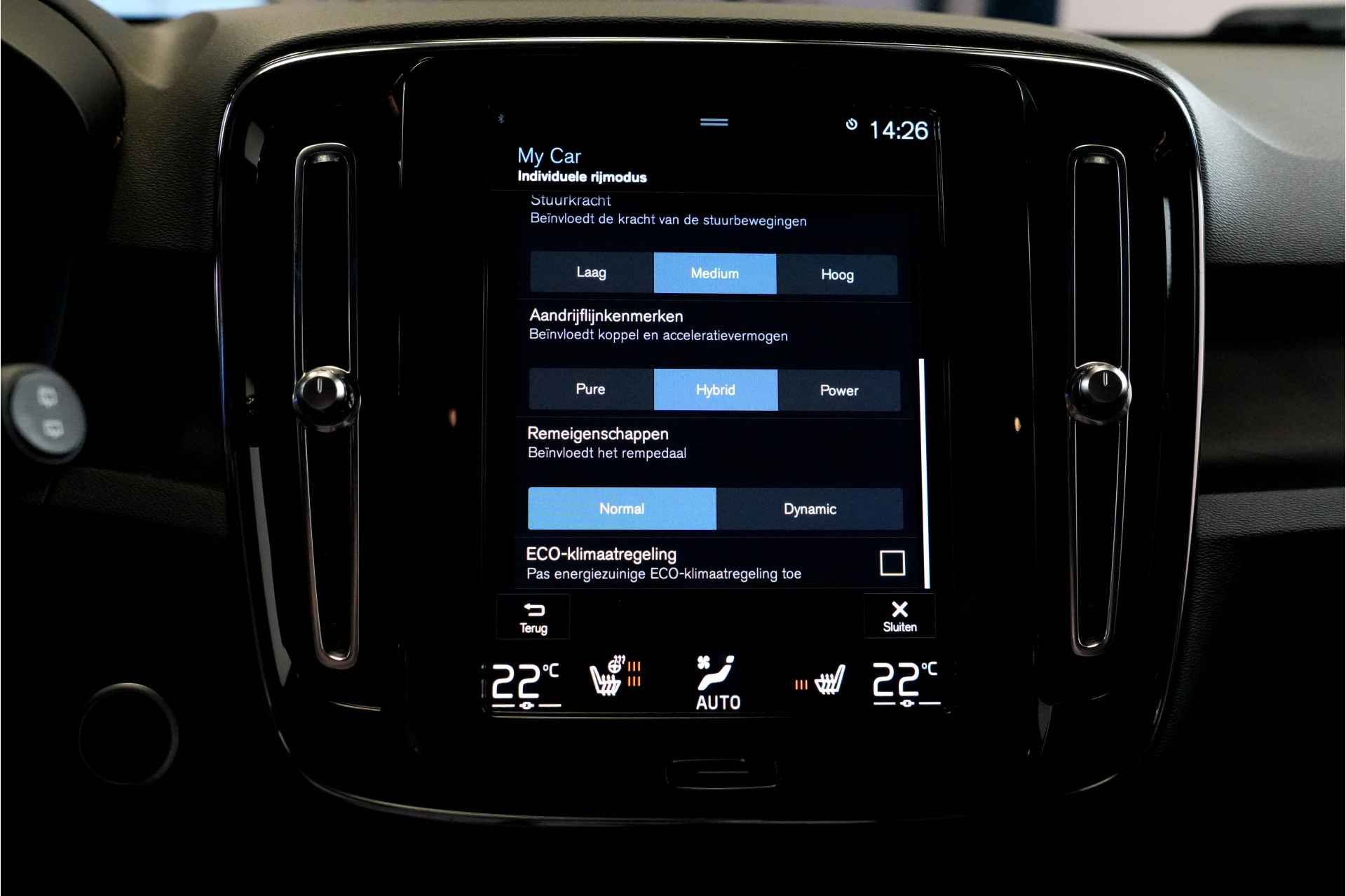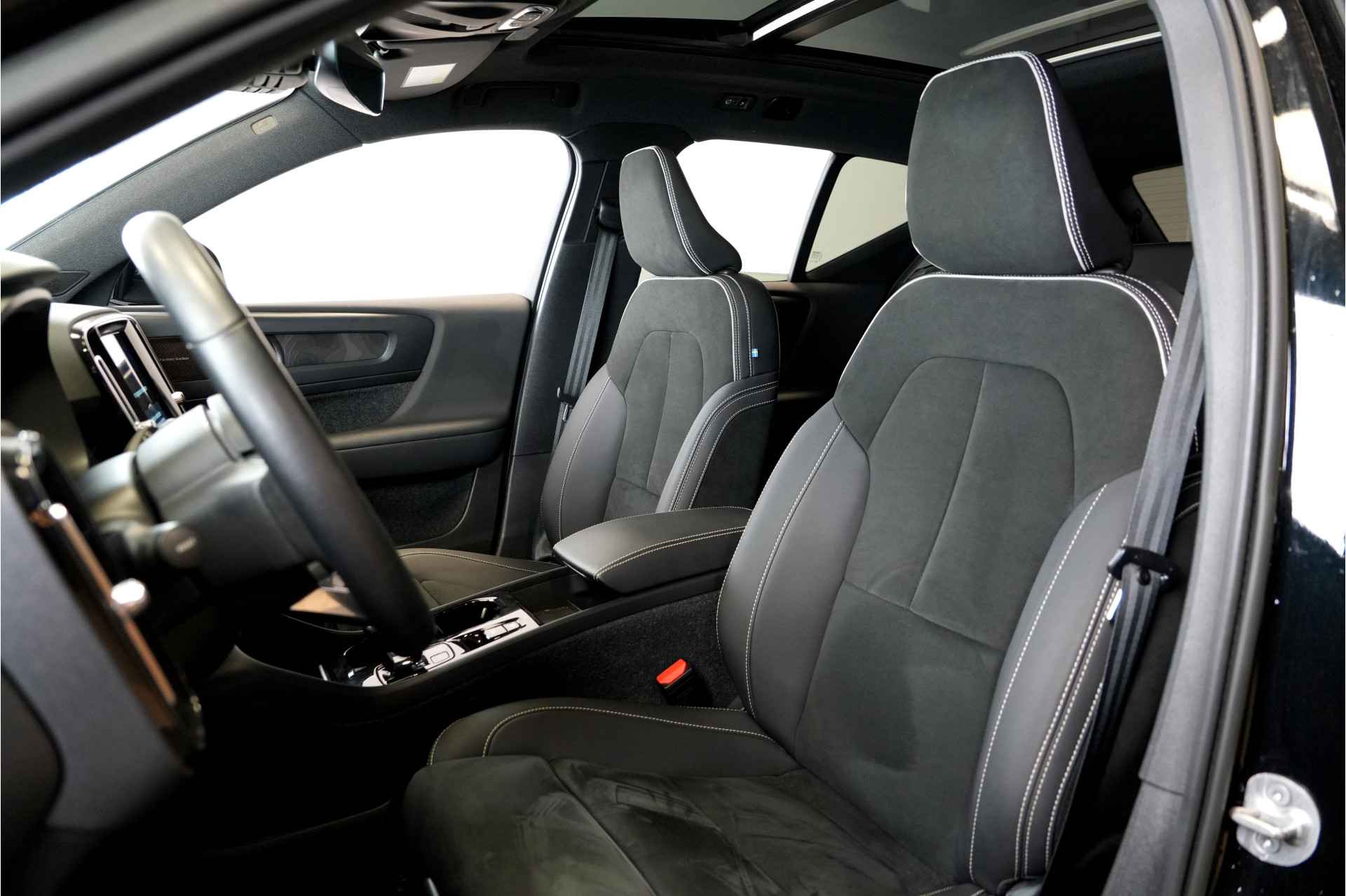 Met een auto als deze Volvo XC40 komt u absoluut goed voor de dag. Deze dealeronderhouden auto uit 2022 heeft 150640 kilometer gereden. De aandrijving komt voor rekening van een benzinemotor in combinatie met een elektromotor en een automatische transmissie. Veel vermogen, laag verbruik! Inladen is een eitje met de elektrisch bedienbare achterklep. En voor een frisse wind tijdens de rit is er het elektrisch bediende glazen panorama dak. U zit er altijd warmpjes bij door de stoelverwarming. Natuurlijk kunt u zonder. Maar waarom? Lekker toch, zo'n verwarmd stuurwiel? Vergeet halogeen; deze koplampen gebruiken de allernieuwste matrix LED-technologie met maximale lichtopbrengst zonder de tegenligger te hinderen. Bij de rijke uitrusting horen ook 19 inch lichtmetalen velgen, warmtewerend glas, drive mode control, zwarte hemelbekleding, dakspoiler en in delen neerklapbare achterbank.
