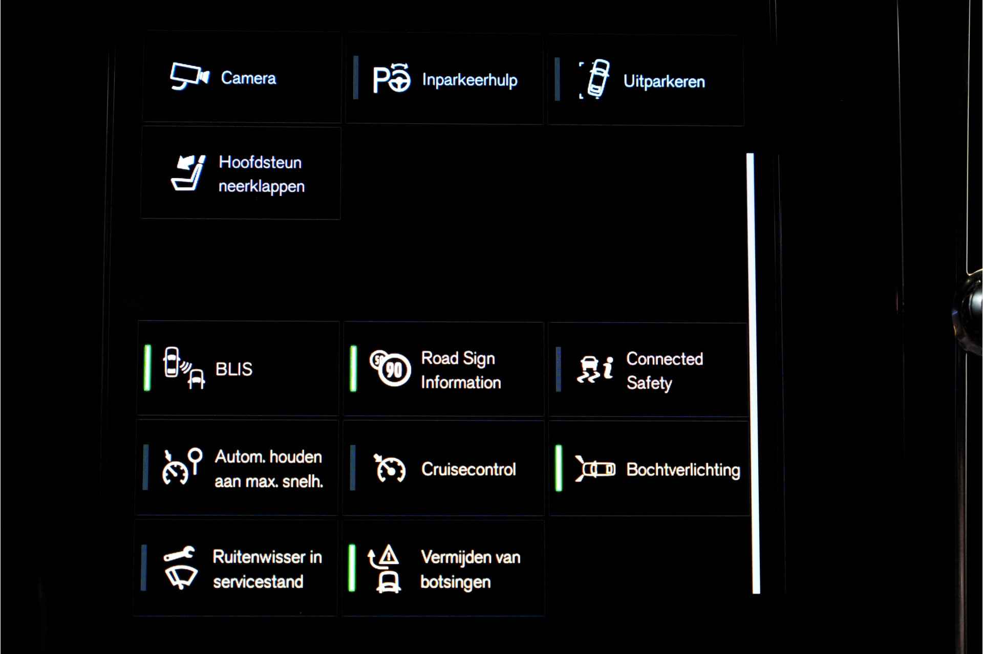 De geavanceerde technologie in deze Volvo is in staat om onderweg het verkeer om u heen te monitoren en er op te reageren. Zo hebt u als het ware een automatische co-piloot aan boord. U rijdt ook veiliger omdat deze auto voor u de verkeersborden langs de weg kan lezen. De belangrijkste borden worden op uw instrumentarium geprojecteerd, zodat u ze niet kunt missen. Keep your lane? Het Lane-keeping systeem zorgt er automatisch voor. Rijdt een ander voertuig in uw dode hoek dan waarschuwt het systeem met een signaal. Bovenop deze veiligheidsfeatures heeft deze Volvo bovendien City Safety System, forward collision warning system, hill hold functie, brake assist, vermoeidheidsherkenning en bandenspanningcontrolesysteem.