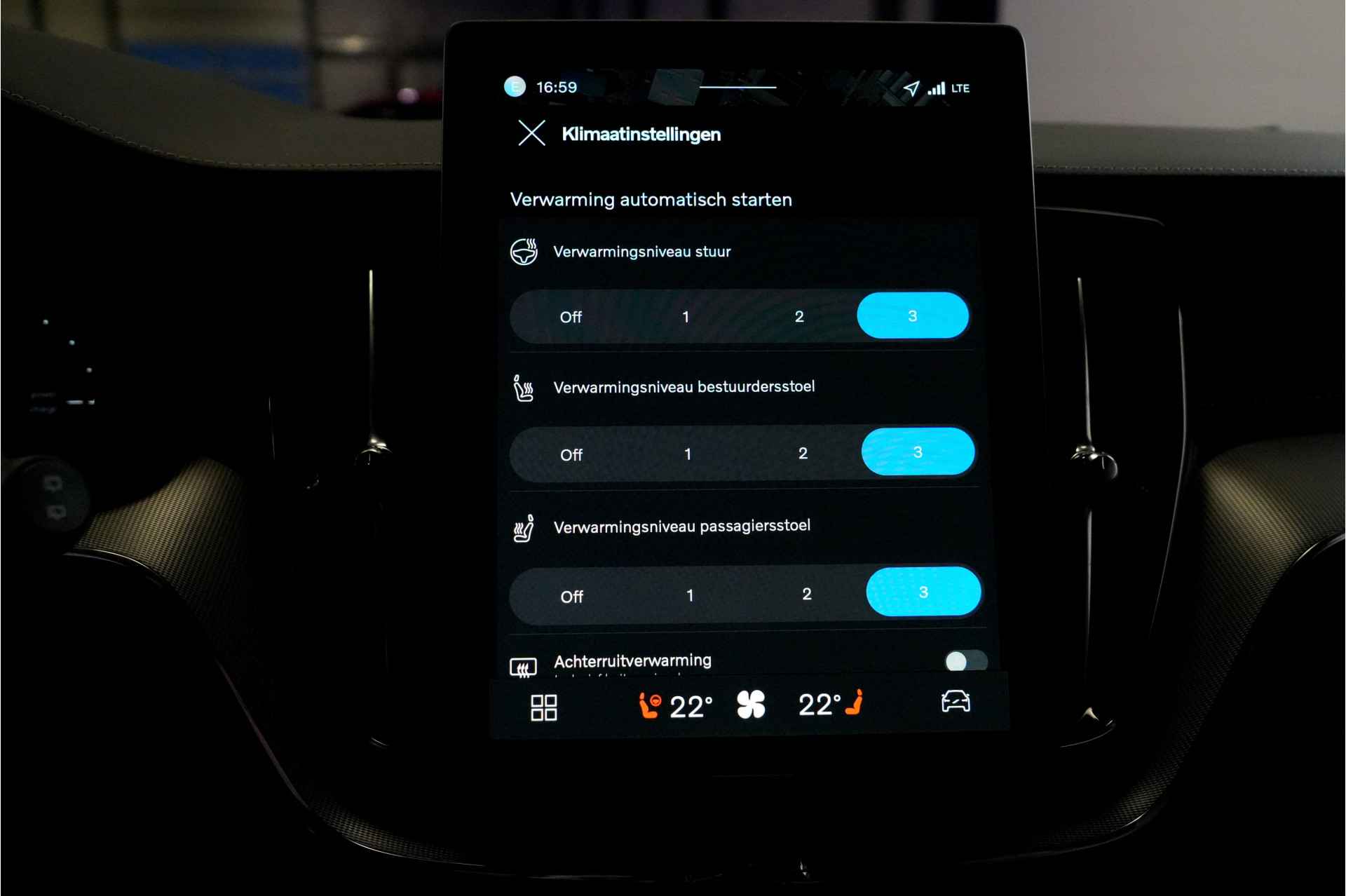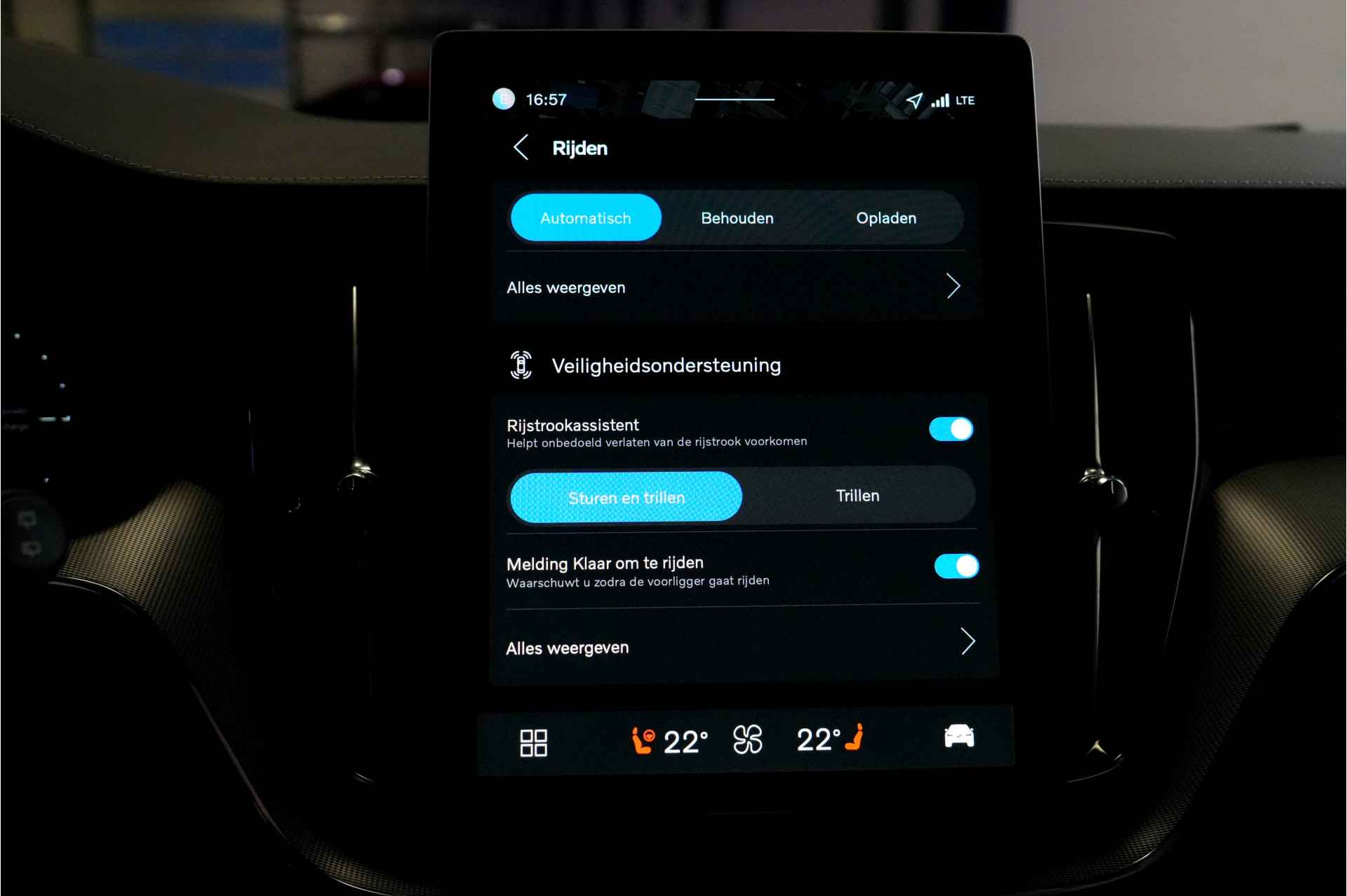 Deze Volvo is voorzien van verschillende intelligente veiligheidsvoorzieningen. Ze kijken tijdens het rijden als het ware met u mee, ze signaleren potentieel gevaarlijke situaties en in een aantal gevallen kunnen ze ook ingrijpen. Blik permanent op de weg en toch belangrijke functies in beeld? De head-up display projecteert rij-informatie op de voorruit! Bij de veiligheidssystemen van deze Volvo hoort ook de verkeersbord-detectie. Die leest tijdens het rijden als het ware met u mee en attendeert u op de significante verkeersborden langs en boven de weg. Indien u onbedoeld de rijstrook lijkt te verlaten, reageert het Lane-keeping systeem meteen en corrigeert. De veiligheid van deze auto wordt verder verhoogd door dodehoekdetector detectiesysteem, City Safety System, forward collision warning system, hill hold functie, brake assist en vermoeidheidsherkenning.
